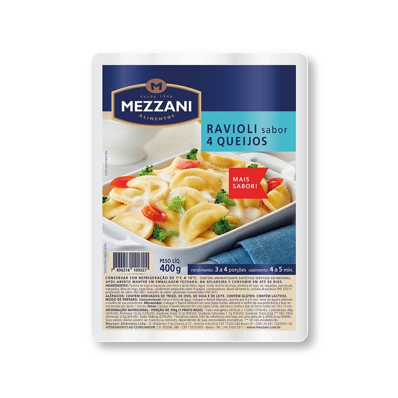 Massa refrigerada Ravioli Mezzani 4 Queijos 400g