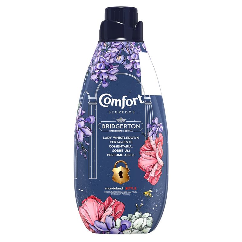 • Amaciante Concentrado Comfort Segredos Bridgerton, é uma Edição Especial e limitada, em parceria com a Netflix • Comfort Segredos Bridgerton tem um perfume misterioso que se mantêm em suas roupas por muito tempo. Descubra o segredo mais perfumado de Bridgerton • O amaciante de roupas Comfort Segredos Bridgerton possui um perfume exclusivo feito com ingredientes da perfumaria fina • Comfort Segredos Bridgerton é um amaciante de roupas concentrado que possui cápsulas de perfume de longa fixação para uma experiência olfativa sofisticada e marcante • Experimente o Amaciante Concentrado Comfort Bridgerton: o segredo mais perfumado da realeza! • Comfort segredos Bridgerton: Lady Whistledown certamente comentaria sobre um perfume assim O Amaciante Concentrado Comfort Segredos Bridgerton possui um perfume misterioso, para que descubra o segredo mais perfumado da realeza. Desenvolvido em Edição Especial em parceria com a Netflix, este amaciante de roupas concentrado possui um perfume exclusivo que reúne os ingredientes mais requintados da perfumaria fina, que garantem uma fragrância sofisticada e marcante. O amaciante de roupas Comfort Segredos Bridgerton garante longa fixação dos perfumes, para que suas roupas fiquem perfumadas por muito mais tempo. Além de cuidar e fixar o perfume em suas roupas, o amaciante Comfort Segredos garante maciez aos tecidos, para roupas sempre impecáveis. Por ser concentrado, menos de meia tampinha basta para descobrir o segredo mais perfumado da realeza: para máquinas até 8 kg ou lavagem à mão, dosar menos de 1/3 da tampa (20 ml). Rende muito mais! Comfort Segredos concentrado possui perfume encapsulado que penetra no tecido durante o processo de lavagem de roupa, deixando-a muito mais cheirosa até mesmo depois de seca! O motivo? Quando você se movimenta, essas cápsulas de perfume se rompem e liberam essa fragrância misteriosa e incrível, fazendo com que aquele cheiro de perfumaria fina dure muito mais! Experimente Comfort Bridgerton Ed