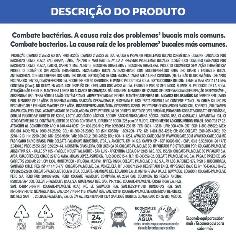 O Enxaguante Bucal Colgate Total 12 oferece 12h de proteção contra a formação de tártaro, cárie e placa.