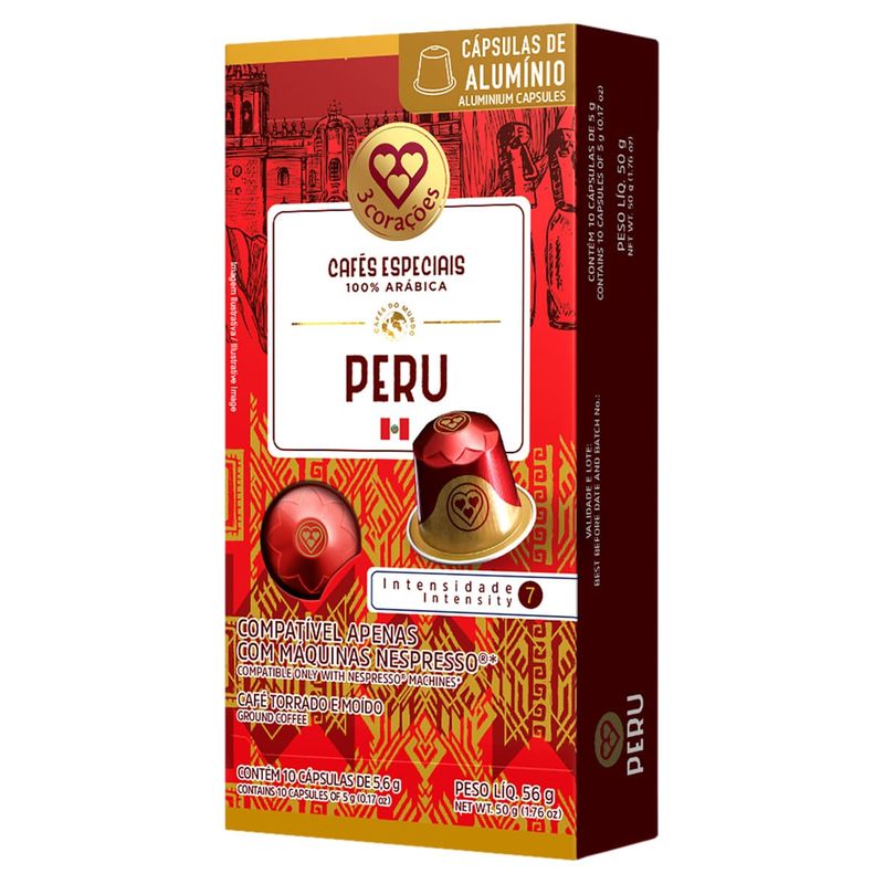 Cápsula 3 Corações Cafés Especiais Peru Com 10 Unidades