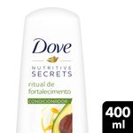 • Condicionador para fortalecimento dos fios, deixando-os mais fortes e resistentes *. • Condicionador Dove que reduz a queda do cabelo desde a 1ª lavagem* • Enriquecido com abacate, conhecido por ajudar a rejuvenescer e hidratar o couro cabeludo. • Condicionador enriquecido com óleo de jojoba, conhecido por suas propriedades de limpeza do couro cabeludo, promover o crescimento e prevenir a queda. • Condicionador Ritual de Reparação possui fórmula com 96% de ingredientes de origem natural**. • Condicionador Dove pode ser usado diariamente. O Novo Condicionador Dove Ritual de Fortalecimento 400ml é ideal para que busca cabelos mais fortes, resistentes e sem queda*. Sua fórmula é enriquecida com ingredientes ideias para o fortalecimento capilar. Com o poder do abacate e óleo de jojoba, reduz a queda do cabelo desde a 1ª lavagem*. O abacate e conhecido por ajudar a rejuvenescer e hidratar o couro cabeludo. A jojoba e conhecida por suas propriedades de limpeza do couro cabeludo, promover o crescimento e prevenir a queda. Além disso, a fórmula possui 96% de ingredientes de origem natural **, trazendo o poder dos ingredientes naturais junto com a nutrição e o cuidado de Dove. Ideal para quem busca um condicionador que ajude no crescimento capilar e hidratação capilar. Dúvidas de como usar? É super simples e prático: Coloque o Condicionador Dove Ritual de Fortalecimento 400ml nas mãos e aplique-o diretamente nos cabelos molhados após a lavagem com o shampoo, aplique por toda a extensão dos fios, concentrando mais nas pontas, e depois desembarace suavemente, da forma que preferir. Para melhores resultados, use também o Shampoo Dove Ritual de Fortalecimento 400ml. Não deixe de conhecer os outros produtos de Dove Rituais, que trazem benefícios como crescimento saudável, reparação, alívio no couro cabeludo e muito mais. Dove acredita que beleza é para todos, e que seu cabelo tem papel fundamental na construção da sua autoestima e beleza real! Seu cabelo te representa e e