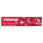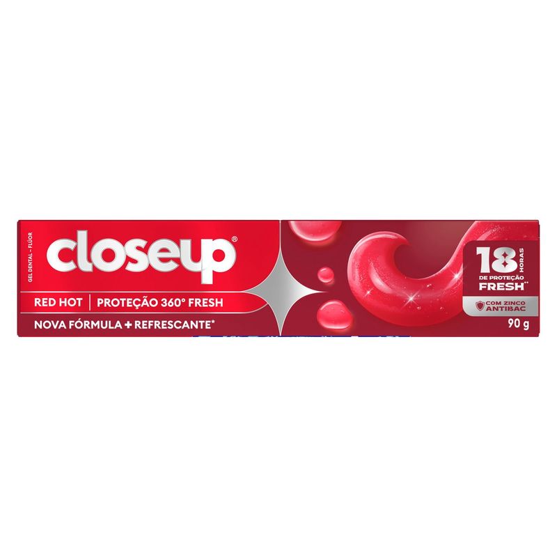 • Closeup Proteção 360º Fresh proporciona até 12 horas* de hálito fresco e intenso. • Protege contra cáries placa, bactérias e ajuda a eliminar até 99% das bactérias causadoras do mau hálito* Estudo in vivo com redução de mau hálito após 4 semanas de uso regular. • Limpa profundamente seus dentes para um sorriso branco e radiante. • Ação antibac que proporciona limpeza profunda e refrescância prolongada. • Sua fórmula apresenta ingredientes de enxaguante bucal com Active Zinc e cristais micro-shine. • Seu sabor combina notas picantes de cravo com menta gelada. A exclusiva fórmula do creme dental em gel de Closeup Proteção 360º Fresh Menthol Paradise, entrega proteção e cuidado completos, proporcionando hálito incrivelmente refrescante e dentes mais brancos a cada uso. Sua fórmula com flúor e ingredientes de enxaguante bucal com Active Zinc, possuem ação antibac, protegendo contra as cáries, placa e ajudando a eliminar até 99% das bactérias causadoras do mau hálito*, proporcionando até 12 horas* de hálito fresco e duradouro. Limpa profundamente seus dentes para um sorriso branco e radiante a cada uso, graças aos cristais micro-shine presentes em sua fórmula. O sabor Red Hot apresenta notas picantes de cravo combinadas com notas de menta específicas (menthol-wintergreen), proporcionando uma duradoura sensação gelada de frescor. Aprecie a explosão de refrescância do sabor Closeup Red Hot e revele o branco natural do seu sorriso. Hálito fresco e dentes mais brancos para você ter confiança de chegar mais perto. O gel dental Closeup Proteção 360º Fresh está disponível no tamanho 90g. Experimente também as outras versões do gel dental Proteção 360º Fresh: Eucalyptus Freeze e Menthol Paradise Ao escovar seus dentes todos os dias após as refeições com creme dental e escova de dentes Closeup, você os protege contra as bactérias e o mau hálito. *Estudo in vivo com redução de mau hálito após 4 semanas de uso regular.