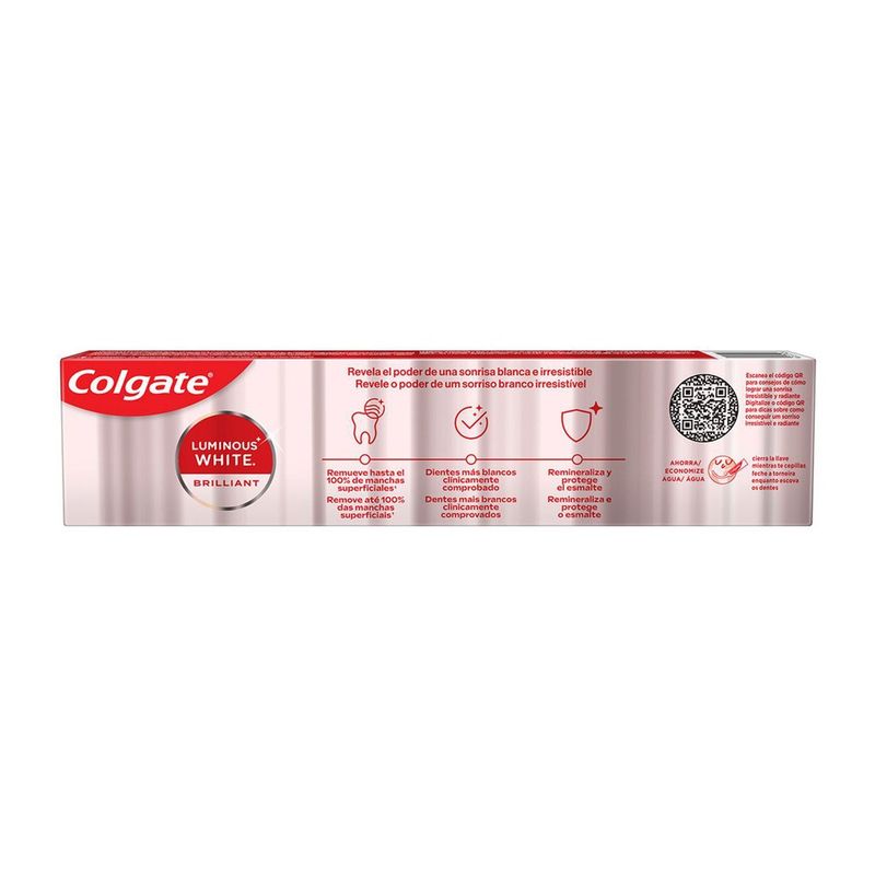 O creme dental clareador Colgate Luminous White Brilliant é um creme que contém uma poderosa tecnologia de clareamento dental para um sorriso mais branco em 1 semana. ¿¿ O creme dental clareador Colgate Luminous White tem uma tecnologia exclusiva com micro cristais que aceleram o clareamento dental. ¿¿ Poderoso removedor de manchas para um sorriso cada vez mais lindo e saudável. ¿¿ Remineraliza e protege o esmalte do dente. ¿¿ O uso contínuo do creme dental clareador ajuda a manter os dentes mais brancos por mais tempo. ¿¿ Esse creme dental auxilia na prevenção da formação de tártaro. ¿¿ Revela o poder de um sorriso irresistível.