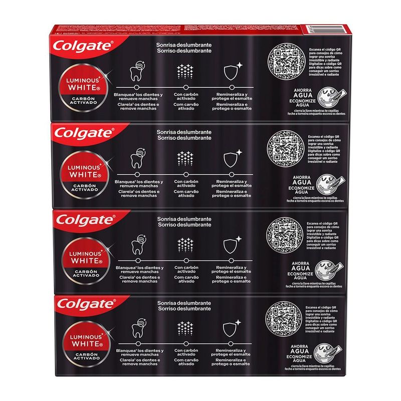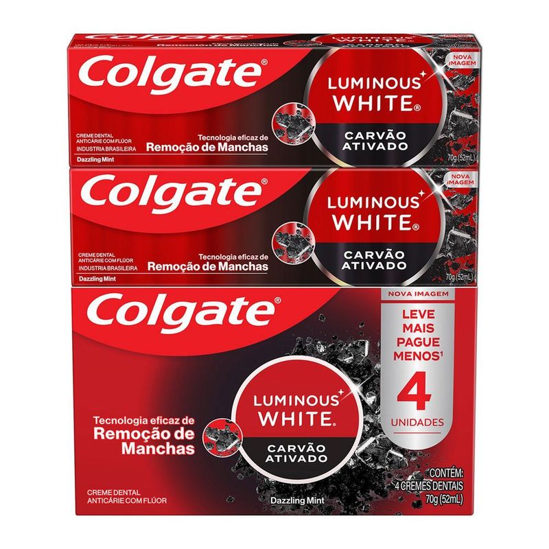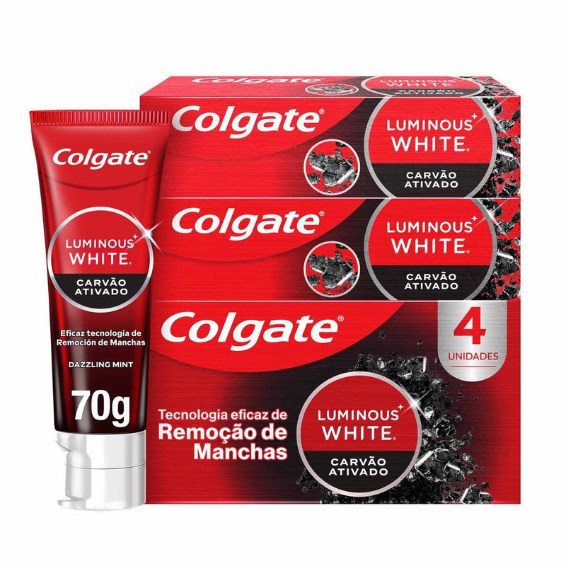Creme Dental Colgate Luminous White 70g com 4 Un Carvão Ativ