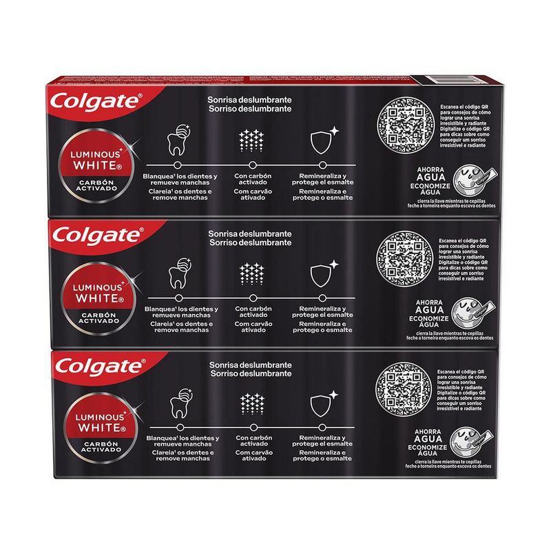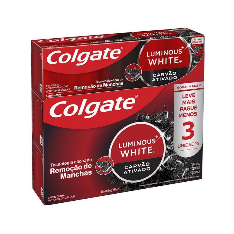 Creme Dental Colgate Luminous White Carvão Ativado 70g 3 unidades