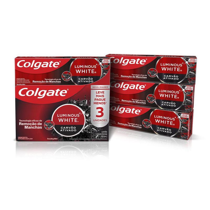 Perfumaria e BelezaSaúde BucalCreme DentalCreme Dental Colgate Luminous White Carvão Ativado 70g 3 unidades