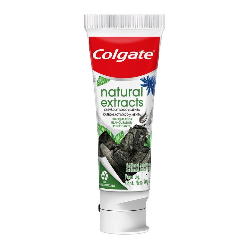 Cuide naturalmente de sua boca com o novo creme dental Colgate Natural Extracts Carvão Ativado e Menta, com ação purificante e branqueadora*. Pasta de dente com flúor, com uma embalagem 100% reciclável e um produto 100% vegano, não testado em animais. Descubra uma experiência incrível na escovação dos dentes graças ao novo sabor Carvão Ativado e Menta, que revitaliza o seu sorriso e também deixa os dentes mais brancos e saudáveis. Colgate Natural Extracts é perfeito para manter os dentes limpos! Sua fórmula com ingredientes naturais permite que você desfrute de um sorriso saudável a todo o momento. *Fórmula com ingrediente purificante." Benefícios: O creme dental Colgate Natural Extracts Carvão Ativado e Menta, com flúor, é uma explosão de sabores surpreendentes para o cuidado do seu sorriso com refrescância. Possui em sua fórmula extratos naturais de carvão ativado e menta, uma combinação inspirada na natureza que ajuda a deixar os dentes naturalmente brancos, removendo as impurezas, com escovação regular. Possui uma fórmula 100% vegana, não testada em animais. Possui uma embalagem reciclável, a primeira da Colgate no Brasil. Experimente nossa linha completa, que conta, também, com outros sabores, além de fio dental e enxaguante, sabor Carvão Ativado e Menta.