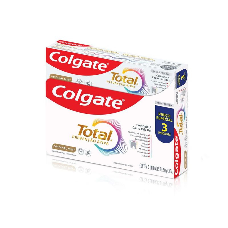 Creme Dental Colgate Total Original Mint 90g com 3 Unidades Preço Especial