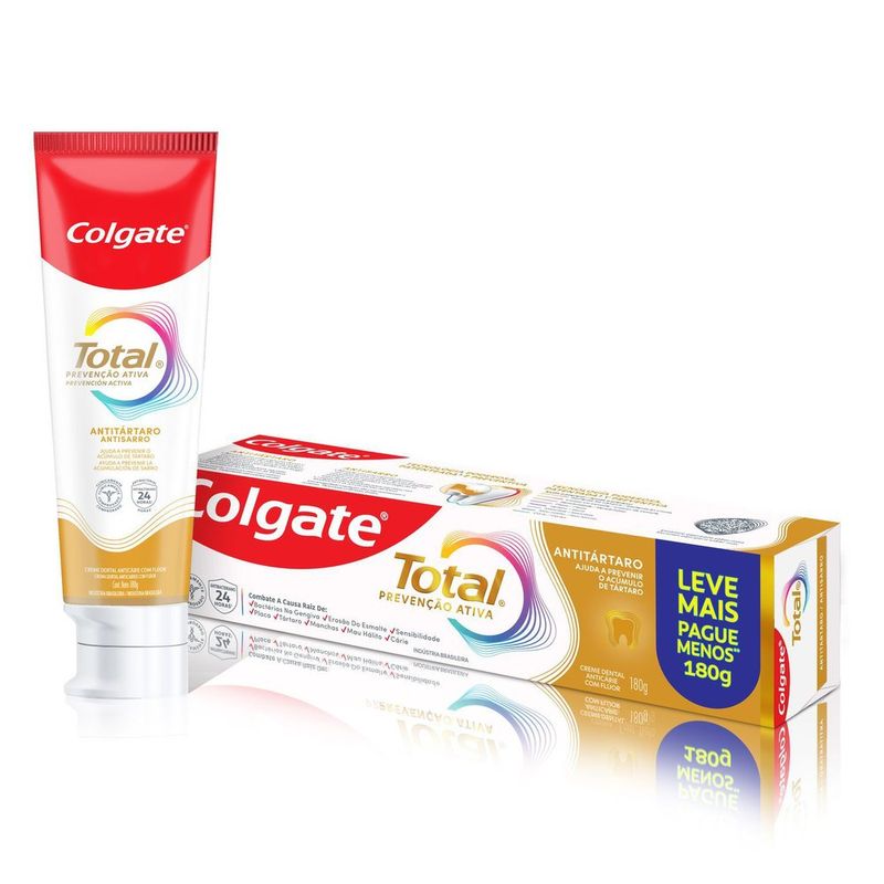 A pasta de dente Colgate Total 12 Anti Tártaro cuida da sua boca por completo, contém micropartículas que limpam e combatem a formação de tártaro em até 40% (vs creme dental comum), sua fórmula antibacteriana proporciona defesa ativa contra bactérias por até 12 horas! (com uso contínuo de 4 semanas).