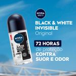 O que é? Desodorante roll on que refresca, protege por 48h e evita manchas nas roupas. Você livre de manchas, suor e mau odor. Confira! Para que serve o Desodorante Roll On Nivea Men Invisible Black & White? Poderosa fórmula elimina 99,9% das bactérias e evita manchas brancas em roupas pretas e manchas amarelas em roupas brancas. Benefícios e diferenciais - A melhor proteção contra manchas e suor - 2x mais agentes antitranspirantes e minerais - Sem álcool etílico e corantes Como usar o Desodorante Roll On Nivea Men Invisible Black & White? Agite bem antes de usar. Ao aplicar o produto, mantenha o frasco a aprox. 15 cm da axila. Espere secar antes de se vestir. Uma unidade de embalagem contém 50ml