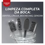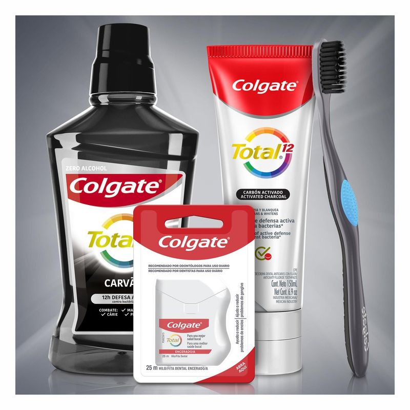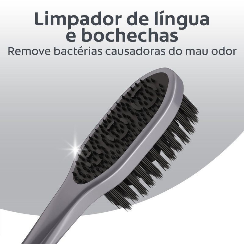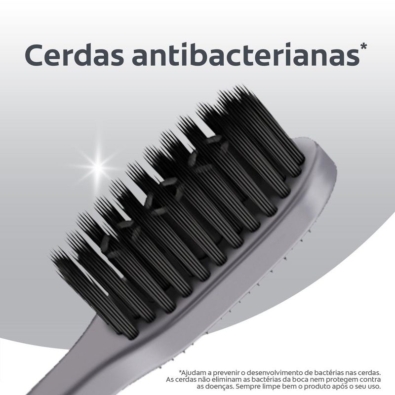 A Escova de dente Colgate® 360° Carvão possui tecnologia de cerdas antibacterianas e promove uma higiene bucal completa e proteção contra bactérias. Sua tecnologia exclusiva proporciona a limpenza dos dentes, língua, bochechas e gengiva. vs escova regular de cerdas planas.