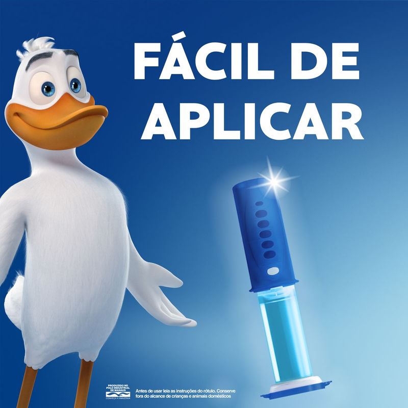 Pato Gel Adesivo é uma solução prática e higiênica que possui aplicador para evitar que o consumidor encoste no vaso sanitário e fórmula com escudo de proteção anti-manchas.