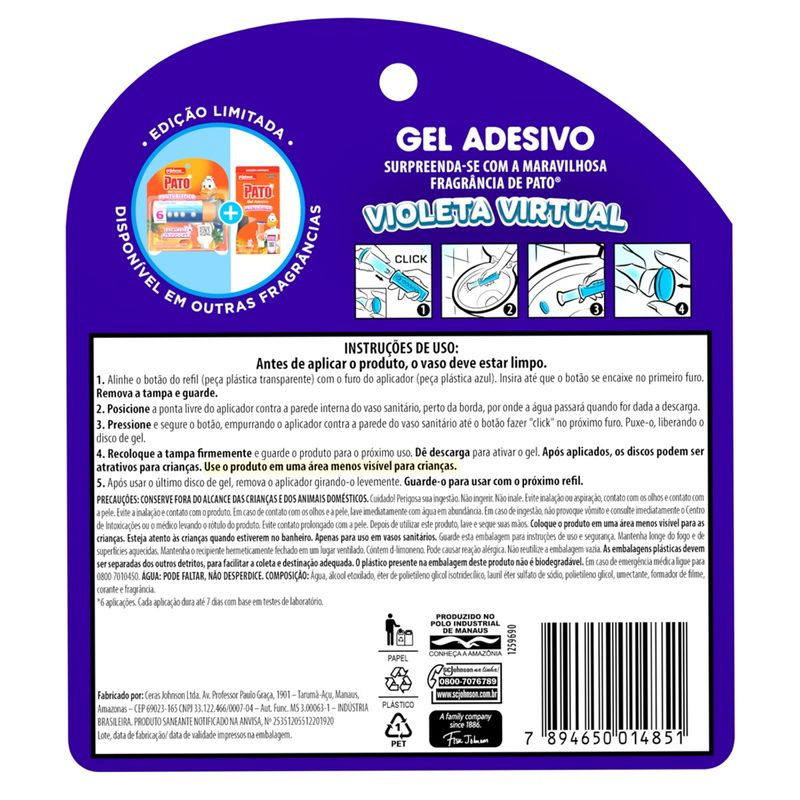Gel Adesivo Sanitário Pato Violeta Virtual Aplicador Com 6 Discos