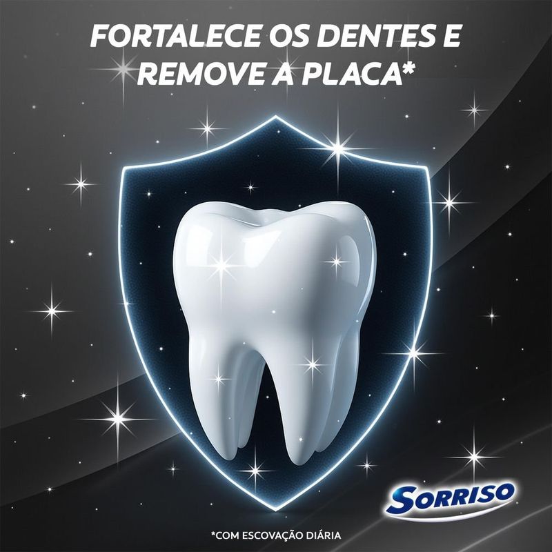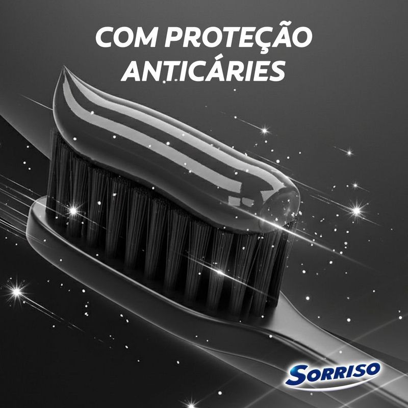 O creme dental Sorriso Carvão Ativado Branco Irresistível oferece um gel dental branqueador com proteção anticárie para fortalecer seus dentes e deixar seu hálito super refrescante.