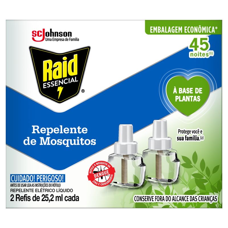 Inseticida Elétrico Raid 45 Noites Essencial Plantas Refil Com 2 Undiades