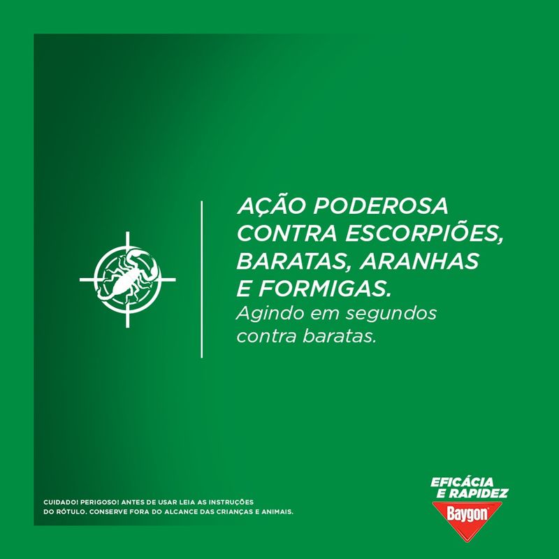 Baygon Mata Baratas e Formigas possui uma exclusiva fórmula a base de água com ação imediata contra formigas, baratas e seus ovos. Age em segundos e continua agindo por até 4 semanas, deixando sua casa livre destes insetos e seus ovos.