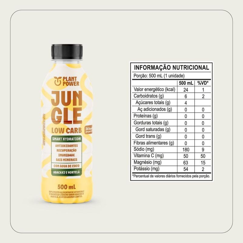 Com a qualidade Jungle, este isotônico low carb entrega hidratação estável durante treinos, mantendo o sabor marcante de abacaxi com hortelã sem pesar no dia a dia. Ao escolher Jungle Low Carb, você investe em energia limpa para recuperação e resistência. Garanta já o seu e sinta a diferença a cada gole. Lembre-se: para informações de alérgenos e glúten, verifique a embalagem.