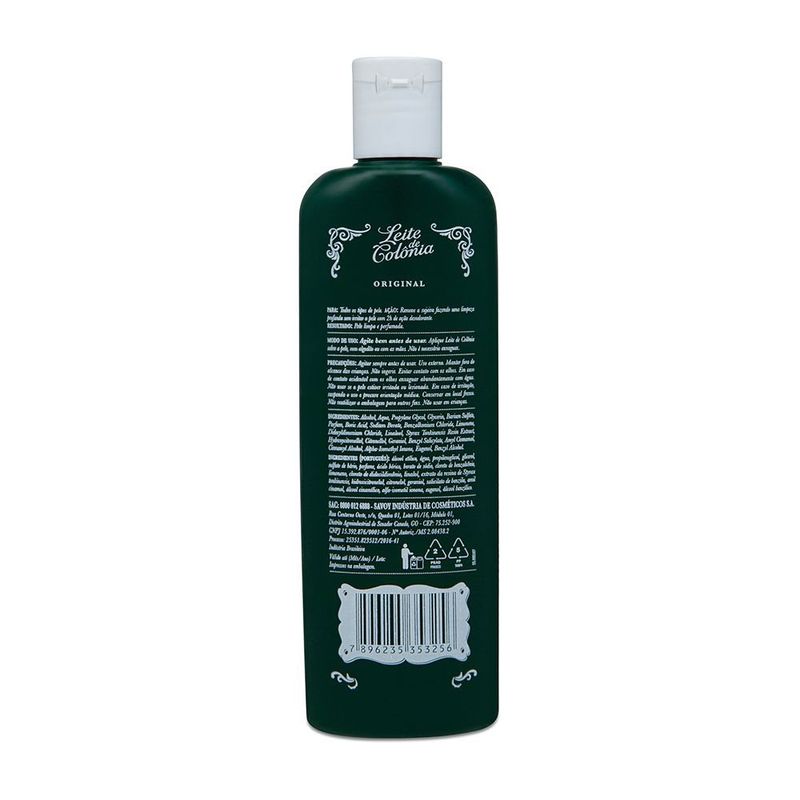 Em embalagem maior, para melhor rendimento, o Leite de Colônia Original há anos sendo o responsável pela limpeza da sua pele.