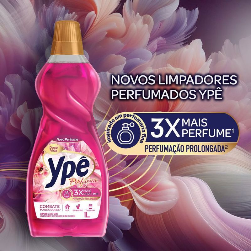 O Limpador Perfumado Ypê Premium - Doce Vida apresenta um perfume que abraça cada cantinho da casa, com cuidado e carinho. Ideal para grandes superfícies, é o único com tecnologia de secagem rápida, além de oferecer até 30h de perfumação.