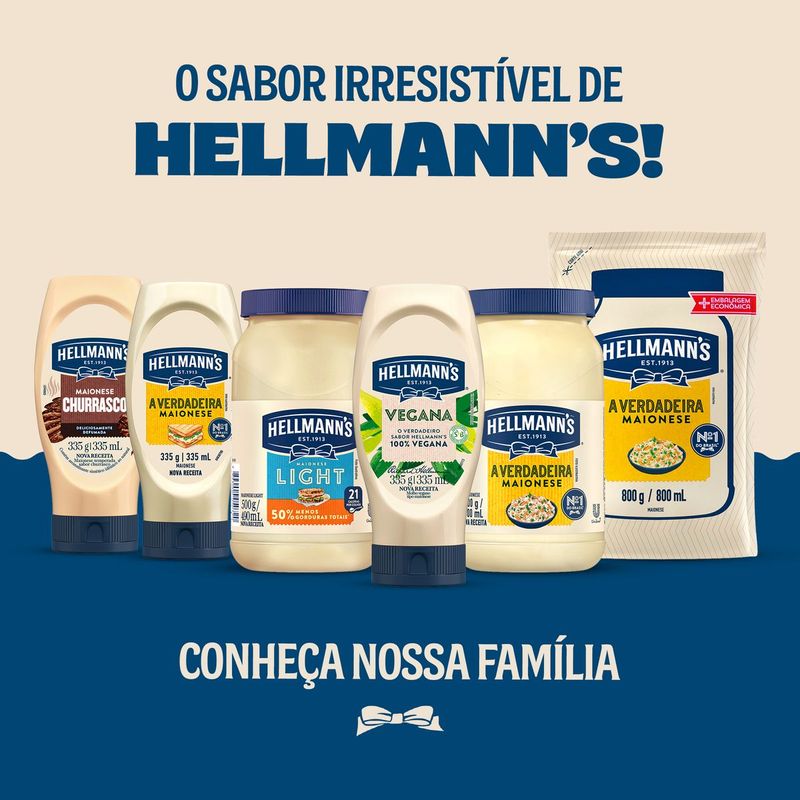 • Molho Vegano Hellmann's 335g: o sabor irresistível da verdadeira maionese, agora 100% vegano. • Sem ingredientes ou traços de origem animal, mantendo toda a cremosidade. • Sem glúten, sem lactose. • Embalagem bisnaga moderna e prática para dosar na medida certa. • Frascos 100% recicláveis e feitos com materiais reciclados. • Ideal para saladas, sanduíches, hambúrgueres veganos e molhos cremosos. A Maionese Vegana Hellmann's 335g tem o sabor irresistível e a cremosidade da verdadeira maionese, agora em versão 100% vegana. Sem ingredientes ou traços de origem animal, mantém a mesma textura e sabor que você já conhece. Sem glúten ou lactose. A embalagem bisnaga facilita o uso e evita desperdício. Com frascos 100% recicláveis, une sabor e sustentabilidade. Perfeita para saladas veganas, hambúrgueres plant-based, petiscos, wraps e molhos cremosos. Transforma receitas veganas em experiências deliciosas.