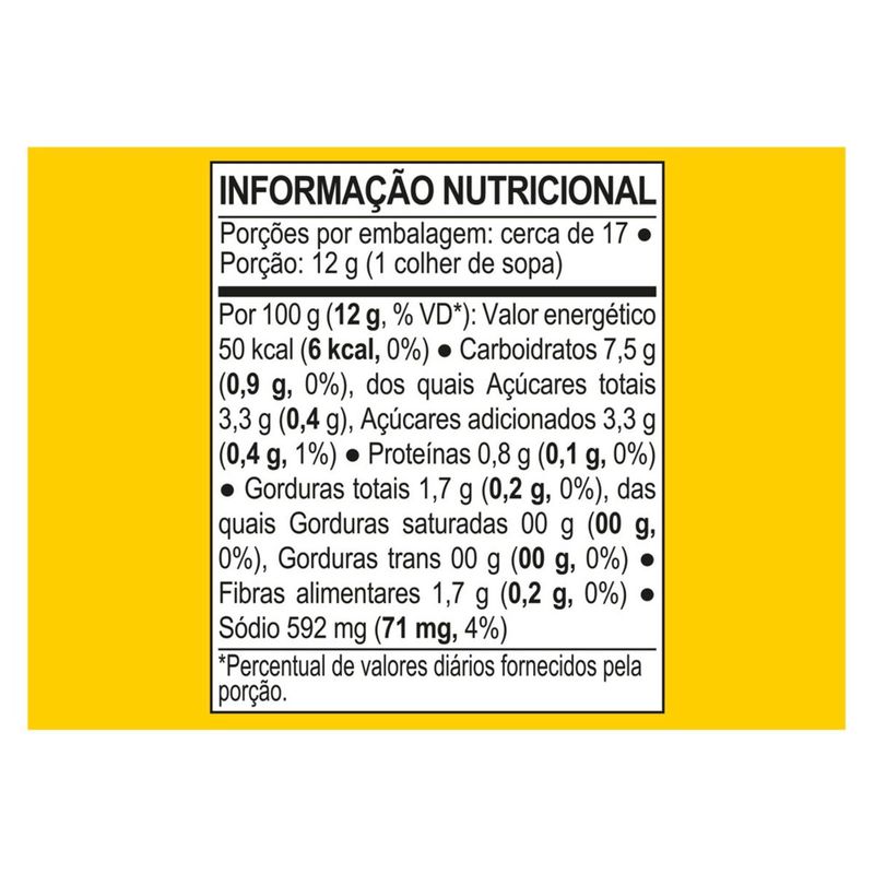 • A Mostarda Tradicional Arisco é muito saborosa, realçando o sabor das suas receitas • A Mostarda Tradicional Arisco é incrivelmente versátil, rende muito e realça o sabor das suas receitas • Esta mostarda dá gosto de ter em casa, pois conta com ingredientes de alta qualidade e muito sabor • A Mostarda Tradicional Arisco dá cor e sabor para as suas receitas, sendo perfeita para o preparo de strogonoffs, sanduíches, hambúrgueres, asinhas de frango e muito mais • A nossa mostarda contém glúten e também pode conter trigo, centeio, cevada, aveia, soja e ovo • A Mostarda Tradicional Arisco 200 g traz praticidade para o seu dia a dia Descubra a deliciosa Mostarda Tradicional Arisco, muito saborosa, realçando o sabor das suas receitas. Sua versatilidade surpreende, realçando os sabores das mais variadas receitas. Com ingredientes de alta qualidade, ela garante sabor às suas criações culinárias. A Mostarda Tradicional Arisco é perfeita para o preparo de strogonoffs, sanduíches, hambúrgueres, asinhas de frango e muito mais, acrescentando cor e sabor às suas preparações. A Mostarda Tradicional Arisco é ideal para deixar as suas receitas mais saborosas ou dar aquele toque especial em molhos e temperos. Além disso, sua embalagem de 200g garante praticidade para o seu dia a dia, permitindo que você tenha sempre à mão esse tempero essencial para suas preparações. A Mostarda Tradicional Arisco contém glúten e pode conter vestígios de trigo, centeio, cevada, aveia, soja e ovo. Portanto, pessoas com restrições alimentares devem estar atentas. Deixe-se encantar pela versatilidade e o sabor marcante da Mostarda Tradicional Arisco, e desfrute de momentos culinários ainda mais especiais com essa companheira indispensável em sua cozinha. Realce o sabor das suas refeições com a prática e saborosa Mostarda Tradicional Arisco! Experimente também outros produtos Arisco para deixar as suas receitas ainda mais saborosas, como o Ketchup Arisco Tradicional e a Maionese Arisco Tradicional. Arisc