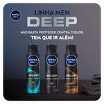 "O que é? Desodorante masculino antitranspirante que protege a pele do suor e das bactérias por 48h. Fragrância moderna. Conheça +detalhes! Para que serve o Desodorante Aerosol Nivea Men Deep? Sua fórmula com carvão ativado age diretamente contra bactérias e impurezas. Deixa a pele limpa, seca e com fragrância prolongada. Benefícios e diferenciais - 48h de proteção - Fragrância prolongada - Sensação de frescor e limpeza - Dermatologicamente testado Como usar o Desodorante Aerosol Nivea Men Deep? Agite bem antes de usar. Ao aplicar o produto, mantenha o frasco a aprox. 15 cm da axila. Espere secar antes de se vestir. Uma unidade de embalagem contém 150ml"