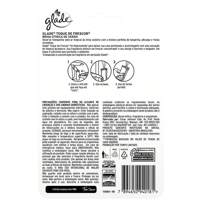 LimpezaInseticidas E OdorizadorOdorizadoresOdorizador Aerossol Glade 12ml Lv 3 Pg 2 Refil Brisa Cítrica
