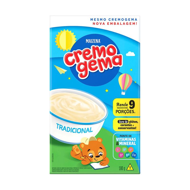 • Cremogema Tradicional Maizena: fonte de 9 vitaminas e minerais essenciais • Rico em Ferro, Zinco e Vitaminas A, C e Complexo B para ajudar na imunidade • Completo: mingau, pavê, creminho e muito mais • Textura cremosa perfeita: dissolve fácil e não empelota • Sem glúten e sem corantes artificiais - nutrição de verdade • Nutrição com carinho e gostinho de infância Cremogema Tradicional Maizena é aquele mingau de baunilha que marcou a infância de gerações. Fonte de 9 nutrientes importantes como Ferro, Zinco e Vitaminas A, C e Complexo B, ajuda na imunidade e no desenvolvimento dos pequenos. Sem glúten e corantes artificiais, é a escolha certa pra quem busca nutrição de verdade. uper versátil: vira mingau cremoso pro bebê, pavê de sobremesa, creminho de baunilha e o que mais a criatividade mandar. Além de dissolver rápido, não empelota e fica cremoso em minutos. Cremogema Tradicional, o gostinho de infância que nunca sai de moda!