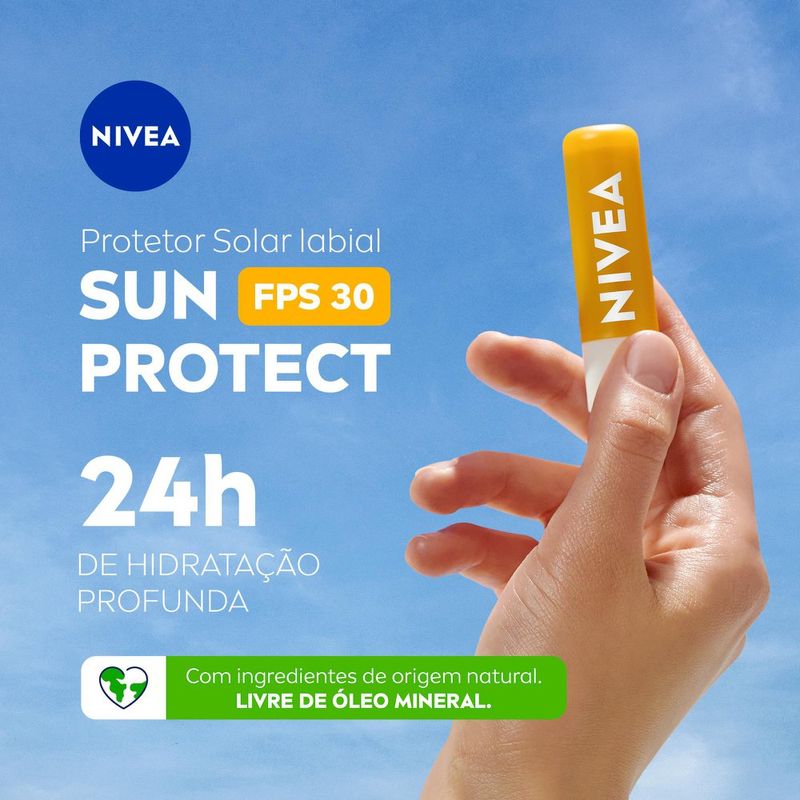 Perfumaria e BelezaCuidados Para O CorpoProtetor E Bronzeador SolProtetor Labial Nivea Sun Protect FPS 30 4,8g