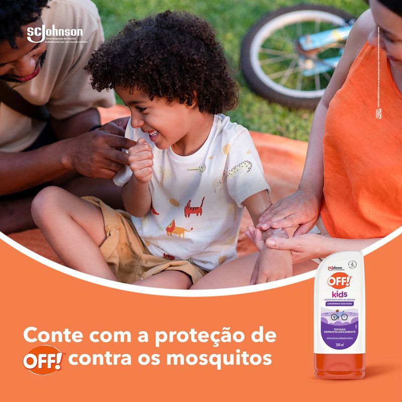 OFF Kids Loção possui fórmula dermatologicamente testada para peles sensíveis. Repele mosquitos que podem transmitir Zika, Dengue, Chikungunya e Febre amarela. Com cheirinho gostoso, garante até 4h de proteção. Desenvolvido especialmente para proteger a pele delicada das crianças contra picadas de mosquitos que podem trazer doenças.