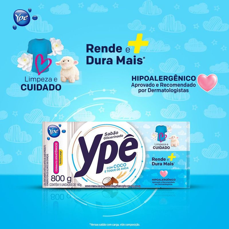 LimpezaCuidados Com A RoupaLava RoupasSabão em Barra Ypê Coco e Aveia 800g