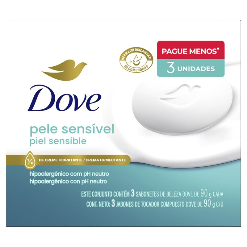 Sabonete Dove com 3 unidades pele sensivel 90g
