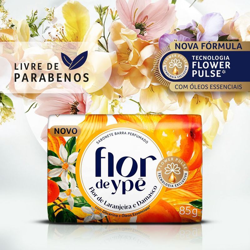 O sabonete Flor de Ypê Flor de Laranjeira e Damasco conta com uma fórmula balanceada com perfumes com óleos essenciais que promovem um toque sedoso ao seu banho, deixando a sensação de pele fresquinha e suave., Disponível em 7 versões: Rosas Brancas e Avelã; Flor de Maçã e Framboesa; Flor de Laranja e Damasco; Frésia e Pêssego; Água de Coco e Alecrim; Gardênia e Argan; Baunilha e Amêndoas Fórmula balanceada com óleos essenciais e glicerina proporcionando uma sensação de suavidade e cuidado com a pele; Testado dermatologicamente; Livre de parabenos