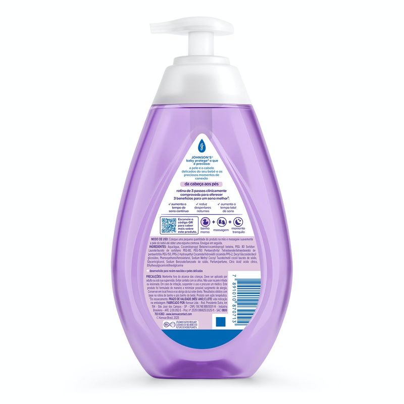 Ajude o bebê a dormir mais rápido e por mais tempo¹ com Sabonete Líquido Relaxante JOHNSON'S® Baby Hora Do Sono, 400mL e sua exclusiva essência NATURALCALM®, com a rotina de 3 passos: banho morno, massagem relaxante e um momento tranquilo. ¹Resultados obtidos com base na rotina de banho e pós banho do bebê.