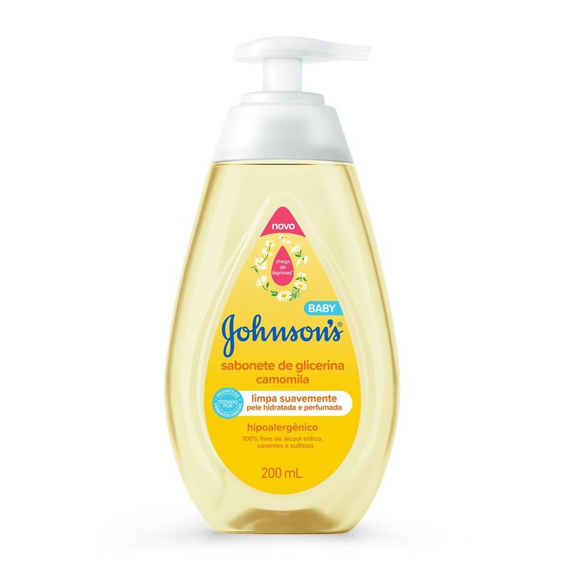 O que é e para que serve? Você sabia que a pele do bebê é mais fina e perde água duas vezes mais rápido que a pele do adulto? Por isso, é importante manter uma rotina de limpeza e higiene adequada para os bebês já nos primeiros dias de vida. O Sabonete Líquido Glicerina Camomila JOHNSON'S® Baby, 200mL é o cuidado que a pele do bebê precisa e a limpeza que você espera com uma fragrância reconfortante. Além disso, é testado por pediatras e dermatologistas, hipoalergênico e seguro desde o primeiro dia de vida. Frasco com 20% de plástico reciclado, cuidando do seu bebê e do futuro do nosso planeta! Benefícios e diferenciais Pele hidratada e perfumada Limpa suavemente Desenvolvido para uso desde o 1º dia. Da cabeça aos pés Testado por pediatras e dermatologistas 94% de ingredientes naturais.* Com glicerina de origem natural Hipoalergênico, formulado para ser suave Exclusiva fórmula CHEGA DE LÁGRIMAS® Livre de ingredientes que são agressivos à pele do bebê (corantes, parabenos e sulfatos) pH ideal para a delicada pele do bebê *Cálculo conforme ISO 16128-1:2016 com base no volume cumulativo, incluindo água. Como usar Coloque uma pequena quantidade do produto na mão e massageie suavemente o cabelo e a pele do bebê até obter uma espuma cremosa. Enxágue em seguida. Indicações de uso: Seguro para todas as idades Composição Aqua/água, Cocamidopropyl Betaine/cocamidopropil betaína, Decyl Glucoside/decil glicosídeo, Sodium Cocoyl Isethionate/cocoil isetionato de sódio, PEG-80 Sorbitan Laurate/polissorbato 20, Glycerin/glicerol, Sodium Benzoate/benzoato de sódio, Citric Acid/ácido cítrico, Sodium Methyl Cocoyl Taurate/metil cocoil taurato de sódio, PEG-150 Distearate/diestearato de PEG-150, Parfum/perfume, Disodium EDTA/edetato dissódico, Polyquaternium-10/poliquatérnio-10. Precauções Mantenha fora do alcance das crianças. Deve ser aplicado por adulto ou sob sua supervisão. Evitar contato com os olhos. Não usar na pele irritada ou lesionada. Em ca