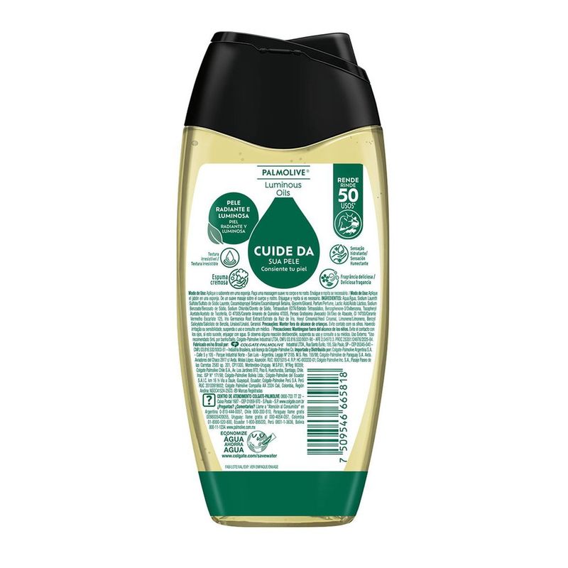 Nutra seus sentidos com a luxuosa mistura de Palmolive Luminous Oils Abacate e Íris. Use-o diariamente para uma pele radiante e luminosa.