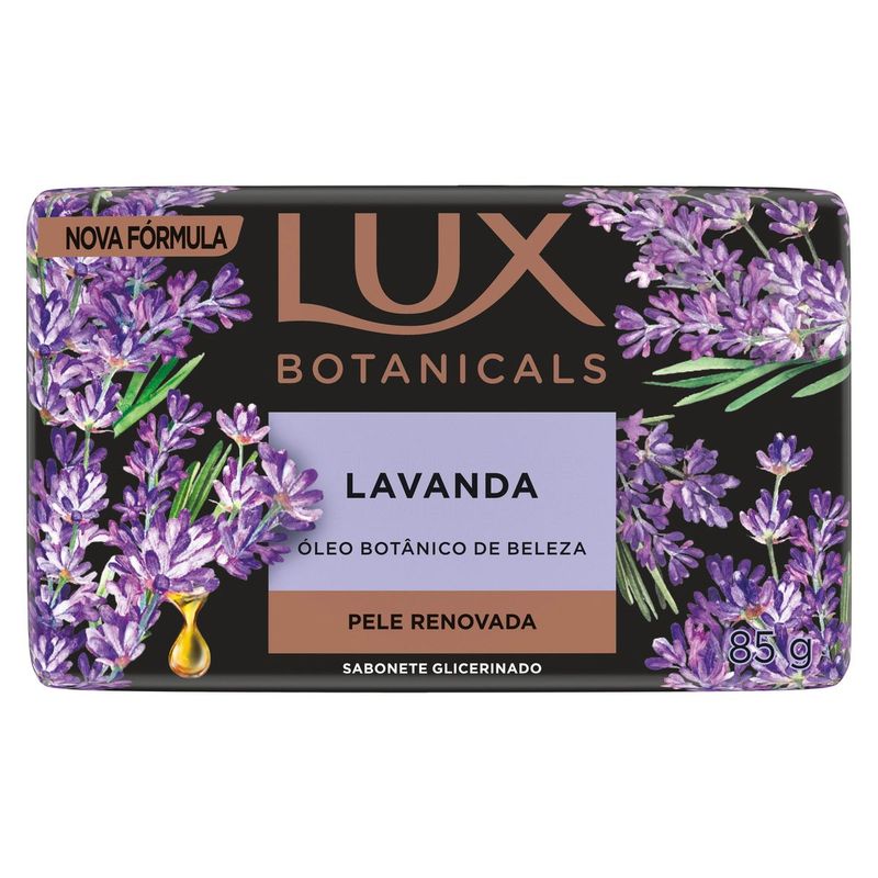 • O Sabonete em Barra Lux Botanicals Lavanda possui uma delicada fragrância floral que revigora sua pele  • Sua nova fórmula contém notas de flores para deixar sua pele delicadamente perfumada  • O sabonete em barra Lux Lavanda confere a sensação de uma pele renovada  • Este sabonete glicerinado é formulado com uma variedade de ingredientes extraídos da natureza e sem parabeno  • Sinta a espuma cremosa e a delicada fragrância de lavanda com este sabonete em barra, para uma pele irresistivelmente renovada e perfumada  • Os sabonetes Lux Botanicals são exclusivamente formulados com óleo botânico de beleza, para uma experiência superior no banho  Sinta a espuma cremosa e a delicada fragrância de Lux Botanicals Lavanda, proporcionando uma pele irresistivelmente renovada e perfumada. O Sabonete em Barra Lux Botanicals Lavanda foi formulado com uma delicada fragrância floral, oferecendo uma experiência de banho única e especial, além de uma sensação de pele revigorada. Lux Botanicals Lavanda é um sabonete glicerinado em barra que contém óleo botânico de beleza, uma mistura de ingredientes extraídos da natureza que ajudam a manter sua pele mais macia e suave. Com notas florais, o Sabonete em Barra Lux Botanicals Lavanda deixa sua pele delicadamente perfumada. Modo de uso: Durante o banho, molhe o corpo, ensaboe e massageie normalmente, enxágue com água. Experimente também os formatos sabonete líquido e o refil de Lux Lavanda, uma linha completa para uma pele ainda mais suave e macia. Conheça outros sabonetes de Lux Botanicals: Lírio Azul, Rosas Francesas, Buque de Jasmin, Flor de Lotus e Óleo de Amêndoas, que podem ser encontrados nos formatos barra, líquido e refil. Todos os sabonetes Lux Botanicals são formulados exclusivamente com óleo botânico de beleza, além de não conter parabenos, proporcionando uma experiência superior no banho. Transforme o toque da sua pele com os sabonetes em barra Lux.
