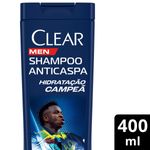 • O Shampoo Anticaspa Clear Men Hidratação Campeã foi desenvolvido para homens, pois o couro cabeludo do homem está mais propenso a caspa • Com fórmula potente elaborada para não ressecar os fios, resultando em um cabelo saudável • Este shampoo anticaspa masculino deixa os cabelos limpos e macios, sem ressecar • Este shampoo masculino é indicado para todos os tipos de cabelos que necessitam de um boost de hidratação • Shampoo de caspa recomendado para uso diário • O Shampoo Clear Men deixa os cabelos limpos e macios e acaba de vez com a caspa, sem ressecar os fios O Shampoo Anticaspa Clear Men Hidratação Campeã foi desenvolvido para homens, porque o couro cabeludo do homem está propenso a caspa. Sua fórmula potente foi elaborada para não ressecar os fios, além de sua ação anticaspa que ajuda a acabar com a caspa recorrente*. Este shampoo anticaspa hidrata os cabelos, deixando-os limpos e macios. O shampoo Hidratação Campeã é indicado para homens com todo tipo de cabelo que necessitam de um boost de hidratação. Aplique no cabelo molhado, massageie o couro cabeludo e enxágue. Repita. Para melhores resultados, use diariamente. Quanto mais se esforça, mais seu corpo irá protestar. O suor e a umidade em um dia intenso ou após a prática de esportes, podem deixar você com um couro cabeludo com coceira, o que possivelmente ajudará no aparecimento da caspa. Em Clear Men, queremos inspirar as pessoas a mostrar ao mundo do que são feitas, ajudando-as a se tornarem resilientes, eliminando ansiedades e dúvidas. Que tenham a confiança para dar o seu melhor! Por isso, os Shampoos Clear foram desenvolvidos para fortalecer o couro cabeludo e acabar de vez com a caspa, além de proporcionar uma sensação refrescante que dura o dia todo. Clear, nada a esconder! *livre de escamas visíveis com o uso regular.