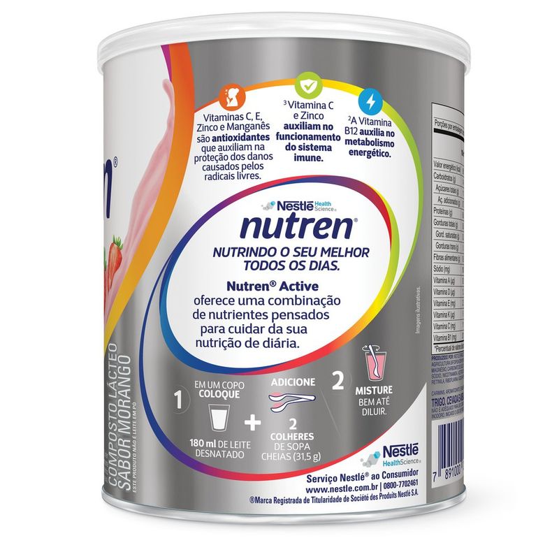 Complemento alimentar da Nestlé para auxiliar a adequar as necessidades nutricionais com 20 vitaminas e minerais antioxidantes, fonte de proteínas, baixo em teor de gorduras totais* e sem adição de açúcares*. Possui 174 kcal por porção**. Sabores Morango e artificial de Baunilha.*Contém açúcares próprios dos ingredientes. Este não é um alimento baixo ou reduzido em valor energético.**Quando preparado de acordo com as instruções do fabricante.