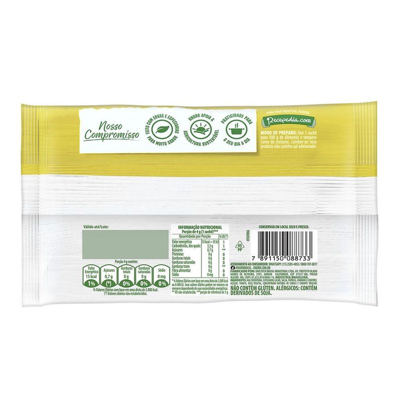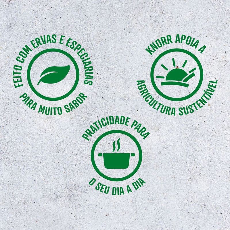 • O Tempero em Pó Knorr Zero Sal Frango é a escolha perfeita para um preparo com 100% sabor e 0% sal • Este condimento para frango é feito com ervas e especiarias que garantem sabor para os seus pratos • O Tempero em Pó Knorr Zero Sal Frango é feito com ingredientes cuidadosamente selecionados, como alho, salsa, páprica, cominho e coentro • Muito fácil e prático de usar: utilize 1 sachê do Tempero em Pó Knorr Zero Sal Frango para 500 g de alimento. Lembre-se, esse produto não contém sal adicionado! Se desejar, dê o seu toque de sal • O Tempero em Pó Knorr Zero Sal Frango é um produto feito com ingredientes cultivados sustentavelmente • Garanta mais praticidade e versatilidade no seu dia a dia com toda a linha de Temperos em Pó Knorr O Tempero em Pó Knorr Zero Sal Frango é a escolha perfeita quando o assunto é praticidade e equilíbrio para o seu dia a dia. Este condimento é uma ótima opção no preparo de seus pratos com frango, pois é feito com uma combinação única de ervas e especiarias, que garantem 100% de sabor, com zero sal adicionado. Para usar é muito fácil: utilize 1 sachê do Tempero em Pó Knorr Zero Sal Frango para 500 g de alimento. Lembre-se, esse produto não contém sal adicionado! Se desejar, dê o seu toque de sal: recomendamos meia colher de chá (2,5g) de sal para 500g de alimento. Nossos temperos são bons para você e bons para o planeta: feitos com ingredientes cultivados sustentavelmente e produzido em uma fábrica com zero emissão de gás carbônico! O Tempero em Pó Knorr Zero Sal Frango garante que seus preparos tenham aquele toque a mais, pois é feito com ingredientes selecionados, como alho, salsa, páprica, cominho e coentro. Experimente preparar um delicioso frango em cubos acebolado com brócolis. Conheça toda a nossa linha de Temperos em Pó Knorr Zero Sal e garanta mais praticidade e versatilidade para os seus preparos do dia a dia. Linha disponível nos sabores Carne, Frango e Legumes.