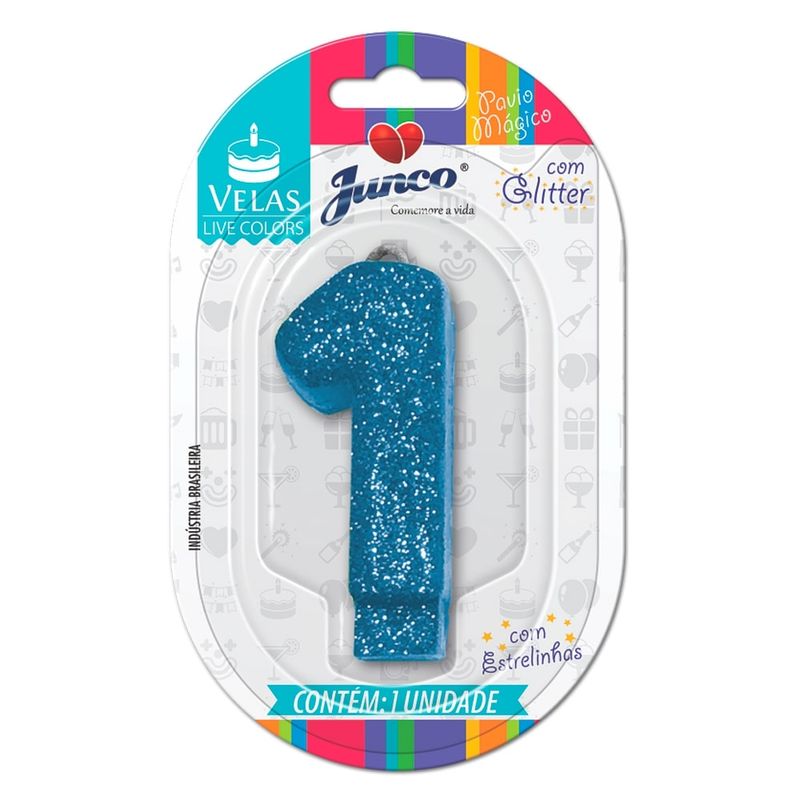 Bazar E UtilidadesDescartáveis E Art FestaArtigos De FestaVela Aniversário Junco Com Gliter Azul N 1